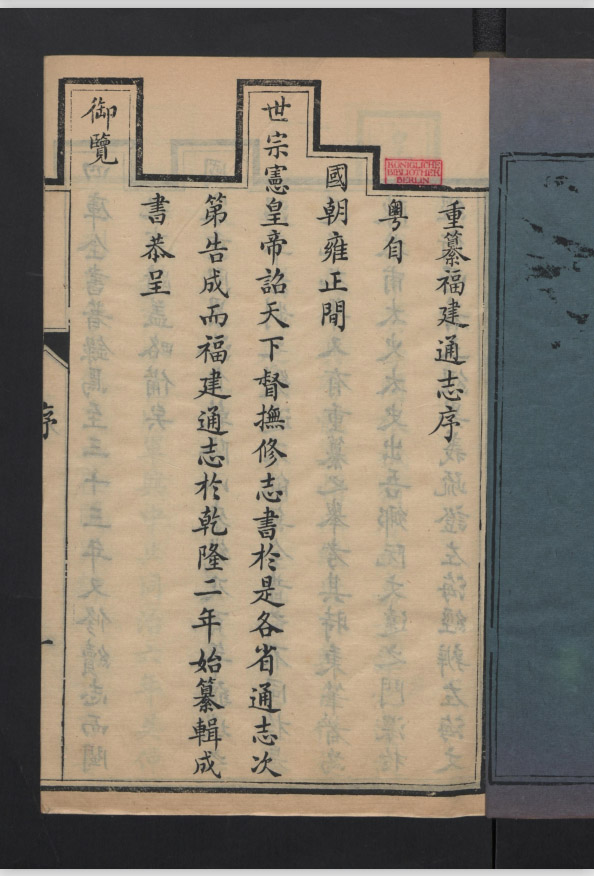 《重纂福建通志》 278卷 圖1卷 首6卷 附1卷 于乾隆二年纂辑成书,四库全书著录马至三十三年重修续志。